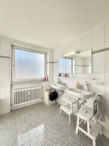 Objektbeschreibung: Die Wohnung befindet sich mitten im Herzen von 71032 Böblingen und überzeugt durch eine durchdachte Raumaufteilung, hochwertige Ausstattung und ein ideales Wohnumfeld für Paare, Familien oder Menschen mit Platzanspruch. Bereits beim Betreten der Wohnung fällt der großzügige Grundriss auf. Das helle Wohnzimmer bietet viel Raum für gemütliche Stunden und gesellige Abende. Von hier aus gelangen Sie auf den großen Balkon, der ausreichend Platz für eine Sitzgruppe, Pflanzen und entspannte Stunden im Freien bietet. Die hochwertige, moderne Einbauküche lässt keine Wünsche offen und ist perfekt für alle, die gerne kochen und Wert auf Qualität legen. Von dort aus geht es in den Essbereich, der genügend Platz für eine schöne Essgruppe bietet. Das Tageslichtbadezimmer ist ein echtes Highlight: Es ist ausgestattet mit Dusche, Badewanne, zwei Waschbecken und bietet viel Platz für die tägliche Routine. Ein zusätzliches Gäste-WC erhöht den Komfort im Alltag. Das große Elternschlafzimmer bietet viel Stellfläche und ein harmonisches Raumgefühl. Ergänzt wird das Raumangebot durch ein Kinderzimmer und ein Arbeitszimmer, das sich ideal für Homeoffice oder Hobby eignet. Zur Wohnung gehört außerdem ein geräumiger Abstellraum im Keller, der wertvollen Stauraum schafft. Eine abschließbare Einzelgarage für Ihren PKW ist ebenfalls im Angebot enthalten. Die Wohnung vereint Komfort, Lage und Wohnqualität – die perfekte Kombination für alle, die zentrales Wohnen in Böblingen schätzen und dennoch großzügig leben möchten. Ausstattung: - Großer Balkon mit viel Platz für Sitzmöbel und Pflanzen - Moderne, hochwertige Einbauküche (in der Gesamtmiete inkludiert) - Tageslichtbad mit Dusche, Badewanne, zwei Waschbecken - Separates Gäste-WC - Großes Elternschlafzimmer - Kinderzimmer - Arbeitszimmer / Homeoffice - Helles Wohnzimmer - Großer Essbereich - Geräumiger Kellerabstellraum - Einzelgarage für PKW (in der Gesamtmiete inkludiert) - Heizung aus 2009 - Fenster aus 1992 - Waschraum im Keller - Trockenraum im Keller - Großzügiger und praktischer Grundriss mit 4,5 Zimmern - Zentrale Lage in 71032 Böblingen, Brunnenstraße 53 Lage: Die Wohnung befindet sich in zentraler und zugleich angenehmer Wohnlage von Böblingen, in der Brunnenstraße 53. Das direkte Umfeld bietet eine hervorragende Infrastruktur: Einkaufsmöglichkeiten, Bäckereien, Ärzte, Apotheken und Dienstleister sind bequem zu Fuß erreichbar. Auch Schulen und Kindergärten befinden sich in unmittelbarer Nähe. Die Anbindung an den öffentlichen Nahverkehr ist ausgezeichnet – Bus- und S-Bahnhaltestellen liegen nur wenige Gehminuten entfernt. Mit dem Auto erreichen Sie schnell die Autobahn A81, das Flugfeld Böblingen/Sindelfingen sowie zahlreiche Arbeitgeber der Region, darunter die großen Automobil- und Technologiestandorte. Trotz der zentralen Lage überzeugt das Wohnumfeld durch ruhige Seitenstraßen und einen angenehmen Wohncharakter. Die nahegelegenen Grünanlagen und Freizeitmöglichkeiten bieten einen hohen Erholungswert.