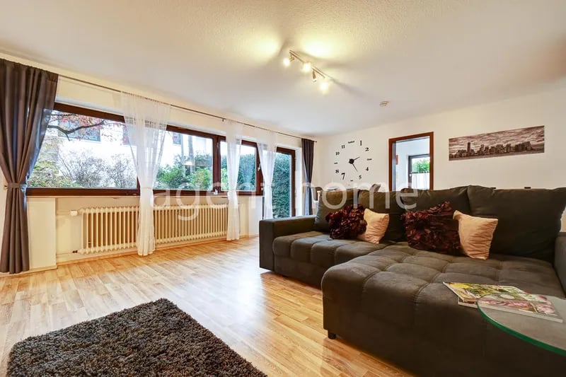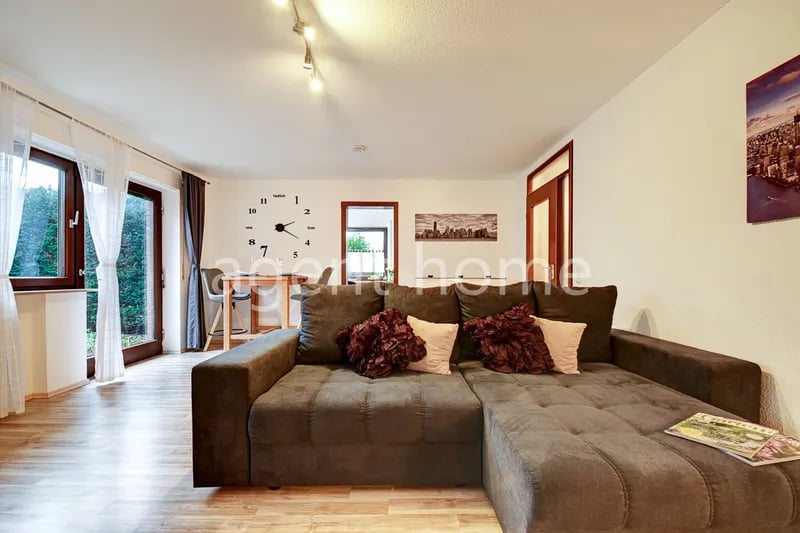 Objektbeschreibung: Modern möblierte 2-Zimmer-Wohnung mit uneinsehbarer Terrasse in ruhiger Wohngegend in Böblingen. Die Wohnung befindet sich im Erdgeschoss eines sehr gepflegten Einfamilienhauses. Das geräumige Wohnzimmer verfügt über ein gemütliches Schlafsofa, einen Essplatz für zwei Personen sowie einen Smart-TV. Von hier ist auch die Terrasse begehbar. Die gepflegte Einbauküche ist mit einem Geschirrspüler, einer Mikrowelle, einem Wasserkocher, einer Kaffeemaschine sowie sämtlichem Kücheninventar ausgestattet. Im Schlafzimmer befinden sich ein Doppelbett (1,60x2m), ein Kleiderschrank und ein Schreibtisch. Das moderne Tageslichtbad ist mit einer bodengleichen Dusche ausgestattet und verfügt über eine Fußbodenheizung. Handtücher sind vorhanden. Das WC ist separat. Im Eingangsbereich der Wohnung befindet sich in einer Nische ein Waschtrockner. Ein Fahrrad kann ebenfalls abgestellt werden. In der angegebenen Miete sind alle Nebenkosten, ein WLAN-Internetanschluss sowie der Rundfunkbeitrag enthalten. Bei Auszug fällt eine einmalige Endreinigungsgebühr an. Die Kaltmiete versteht sich zuzüglich der angegebenen Nebenkostenpauschale. In der angegebenen Nebenkostenpauschale ist ein Möblierungszuschlag enthalten; es fallen keine weiteren Kosten an. Eine Nebenkostenabrechnung erfolgt nicht. SIE SIND VERMIETER EINER MÖBLIERTEN WOHNUNG UND SUCHEN EINEN UNKOMPLIZIERTEN, SOLVENTEN MIETER? Wir kümmern uns um die kompetente Vermietung und finden den richtigen Mieter für Ihr möbliertes Objekt. Wir erstellen ein aussagekräftiges Expose, übernehmen die Besichtigungen, erstellen geprüfte und digitale Mietverträge, kümmern uns auf Wunsch um die Mieterkommunikation und sorgen für eine reibungslose Anschlussvermietung. Noch mehr Vorteile finden Sie auf www.agenthome.de oder Sie rufen uns an unter 0711- 945276 52. Ausstattung: Einbauküche, Kücheninventar, Backofen, Kaffeemaschine, Wasserkocher, Geschirrspüler, Internet, WLAN, Dusche, TV, Bettwäsche, Handtücher, Bügeleisen, Bügelbrett, Hausmeister, Duschwand, Staubsauger, Gefrierschrank, Putzutensilien, Mikrowelle, Waschtrockner, Wama in Wohnung, Doppelbett, GEZ inklusive, Dunstabzug, Schlafsofa, Smart-Home Lage: Bus 723 - Böblingen Ganssee - 3 Min Sonstiges: Terrasse möbliert Zentralhzg. Laminat HMV Tageslichtbad