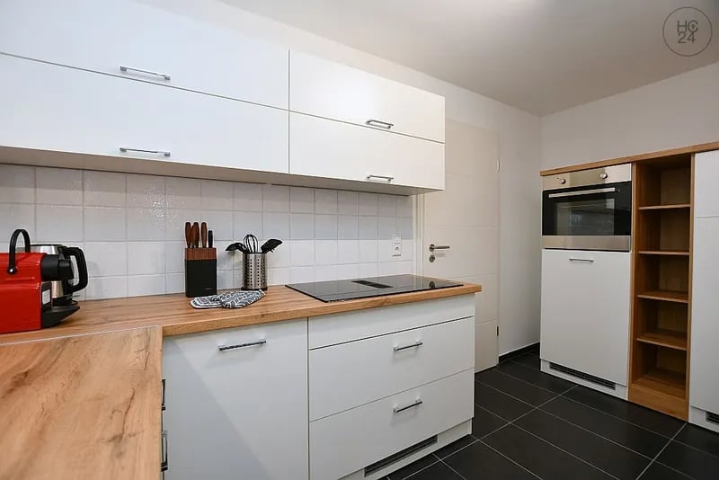 Objektbeschreibung: Modern möblierte 3-Zimmer Wohnung mit zwei Balkonen und Tiefgarage in ruhiger Wohnlage in Böblingen Einkaufsmöglichkeiten sowie die öffentlichen Verkehrsmittel sind in wenigen Gehminuten erreichbar. AUFTEILUNG: - Wohn- und Essbereich mit großer Fensterfront und Zugang zum Balkon, möbliert mit Sofa, Lowboard mit Smart-TV, Esstisch mit vier Stühlen, Schrank - Schlafzimmer mit Doppelbett (180x200) und Kleiderschrank (Zugang zum zweiten Balkon) - Arbeits-/Gäste- oder Kinderzimmer, ebenfalls Zugang zum zweiten Balkon, mit Kleiderschrank, Einzelbett (zusätzliches Ein und Schreibtisch - voll ausgestattete Einbauküche mit Geschirrspüler und Kühl-/Gefrierkombination - Badezimmer mit Tageslicht und Dusche - separates WC SONSTIGES: - Waschmaschine im Badezimmer - Abstellraum in der Wohnung IM MIETPREIS FÜR ZWEI PERSON ENTHALTEN: - Nebenkosten - Stromvorauszahlung 80 € pro Monat (Abrechnung bei Auszug) - WLAN (1000 MBit/s) - TG-Stellplatz (abschgließbare Einzelgarage) ZUSÄTZLICHE KOSTEN: - einmalige Endreinigung 450 € - Aufpreis weitere Person 100 € pro Monat - Rundfunkbeitrag (Anmeldung durch Mieter) Alle Angaben beruhen auf Auskünften des Eigentümers. Trotz unserer Gewissenhaftigkeit können wir für die Richtigkeit der Angaben keine Haftung übernehmen. Noch kein Energieausweis vorhanden. Weitere möblierte Angebote finden Sie unter www.hc24.de. Ausstattung: Balkon, Bettwäsche, Doppelbett, Dusche, Einbauküche, Einzelbett, Hausmeister, Handtücher, Geschirrspülmaschine, Parkettboden, Zentralheizung, Waschmaschine, WLAN, TV-Gerät, Tiefgaragenstellplatz Lage: 2 Gehminuten zum Bus - H Böblingen Reiterhof, 10 Gehminuten zur R46 - H Südbahnhof