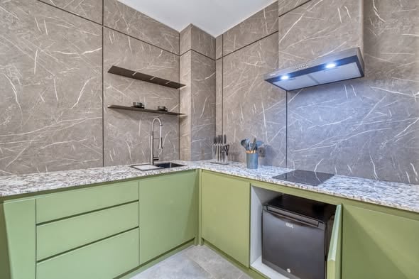 This listing features a modern, adults-only apartment in Central Canggu, offering various amenities suitable for long-term living.