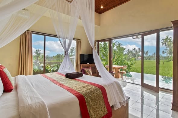 This listing features a one-bedroom, one-bathroom house located in Gianyar, Bali.