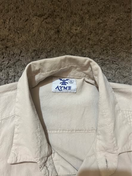 Men’s extra large cream short sleeve button-up shirt with embroidered detailing on the front. This shirt features a classic Guayabera-style design with decorative embroidery panels and two front pockets. Lightweight and comfortable, great for casual wear, summer events, or vacation outfits.