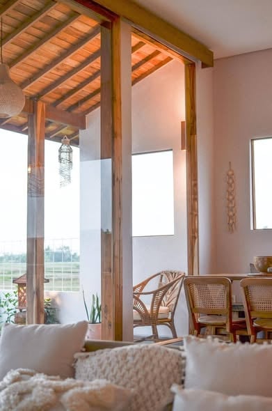This fully furnished three-bedroom villa in Seseh offers open rice field views and is ready for move-in, but is only available for a yearly rental starting April 2026.