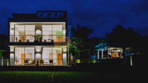 This listing offers a guest house with four rooms, fully furnished with a shared pool and kitchen, located in Tabanan, Bali.