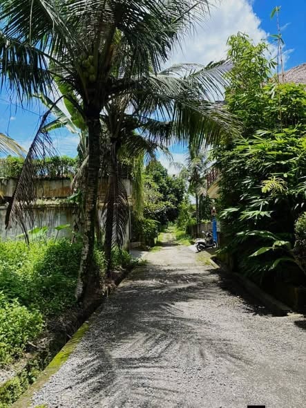 This listing is for a plot of land measuring 407 m² in Pejeng, near Ubud, offering a forest view and access for vehicles.