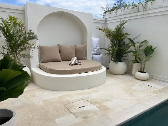 Welcome to Villa Aruna in the Bukit area of Ungasan Renovated 4 bedroom home in a Bali oasis! This 2 storey4 bedroom3 bathroom home located in a tranquil part of Ungasan near Goa Gong, has 360 degree views to the surrounding landscape and GWK statue. Enjoy beautiful sunsets on the balcony surrounded by the beauty and peace of this area. As you walk through the arched doors you are greeted into an amazing, sophisticated space – massive pool area complete with day bed and outdoor shower, lush, tropical landscaping. The living and dining areas are enclosed behind stylish arched doors complete with 6seater dining table, modern kitchen with island bench, living area with 3 seater couch and 70 inch wall mounted TV. The master suite is more like a hotel room. Coming in at a massive 32 sqm it boasts: *King size bed with bespoke rattan arched bed head *Parents lounge area with flat screen TV *Huge ensuite with walk in shower, double basin and stone bath The upstairs area has 3 bedrooms – 2 with ensuite bathroom, perfect for guests or children *Kitchen with island bench and small storage room *Laundry/guest toilet Enjoy an evening cocktail watching the sun go down on the first floor balconyterrace and entertainment area. Property summary: Location: Ungasan, Goa Gong (South Bali) Jl. Melang Kaja no. 63, Kutuh, Kuta Selatan https://maps.app.goo.gl/JyRDNCabuG1T5u2K9 Land area: 210m2 Building area: 250m2 Property type: Freehold Bedrooms: 4 Bathrooms: 3 + Living room: enclosed Kitchen: enclosed Laundry: onsite Swimming pool: 3.8m x 7.5m Electric power: 7000watt Parking: 2 cars Water: Tanks on roof x 3 (3,600 litres in total) Water heater: Solar panels View: swimming pool, GWK, farmland Facing: east Condition: fully renovated Built: 2018. Renovated 2024 Road width: 3.5 metres Furnished: Yes – all brand new furniture custom made, appliances, kitchen crockery, cutlery, bed linen Location: Airport: 25 minutes Jimbaran 15 minutes Pantai Gunung beach 10 minutes Nusa Dua 20 minutes Cafes: Habit – can order coffee on Gojek or go there (500m from villa) https://maps.app.goo.gl/3aqqUDwm9oKAR2EF9 Made Bakery https://maps.app.goo.gl/SgRej7DfyaM3JZtE7 Warungs: (local cafes mainly have rice dishes, tofu, tempe, nice fresh juices) Warung Nur Jaya Food Corner https://maps.app.goo.gl/grYwHgbSVG5C9ncz6 Warung Santai https://maps.app.goo.gl/bPbpbaU4rqGDFmVg8 Supermarkets: Sidewalk Jimbaran – 13 mins by car https://maps.app.goo.gl/4zSdcfRjakSZfEd56 Beaches: Pantai GunungPayung – 10 minutes. Private. No facilities https://maps.app.goo.gl/gQrxziJv7LqRiuGu5 Beach clubs: Sundays –18 minutes Palmilla – 15 minutes Karma Kendara – cliff top & beautiful restaurant 55 mill monthly. 4 billion sell (no nego).