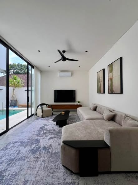 Beautiful fully furnished modern 2 bedroom villa over 2 storeys in Umalas (Semer) with rooftop terrace and a fully enclosed living space for longterm rent. Price: - 44 million per month - 440 million per year - including cleaning 4x/week, 1xlinen change, pool&garden maintenance, WiF Features: ⁃ 2 bedrooms with en-suite bathroom ⁃ land size: 160sqm (1,6are) ⁃ fully enclosed and furnished kitchen/living area ⁃ fully furnished - rooftop terrace ⁃ private pool with outdoor shower ⁃ garden space ⁃ no construction close-by ⁃ parking space - 12 minutes to Seseh beach (5,8km) Video tour on request.